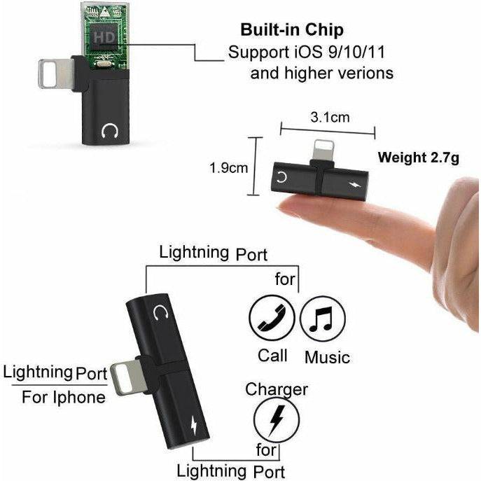 - 2 iN1 Adapter Charging Splitter Headphone Jack Cable