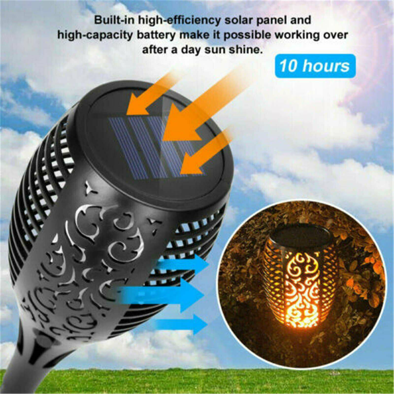 - Gorgeous Flickering Flames: Solar Torches flicker a gorgeous dancing flames, a safe alternative to the real flames....