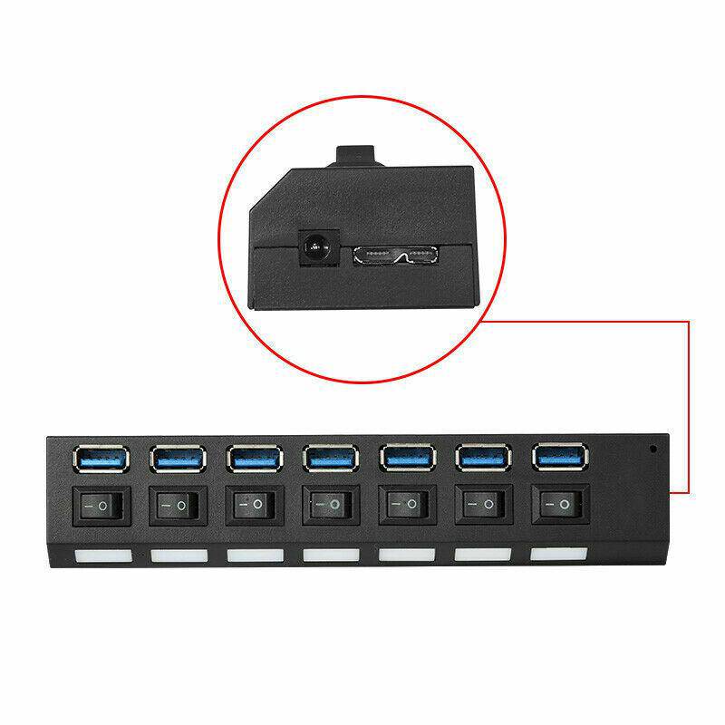 7 Port USB 3.0 HUB Powered +High Speed Splitter Extender PC AC Adapter Cable