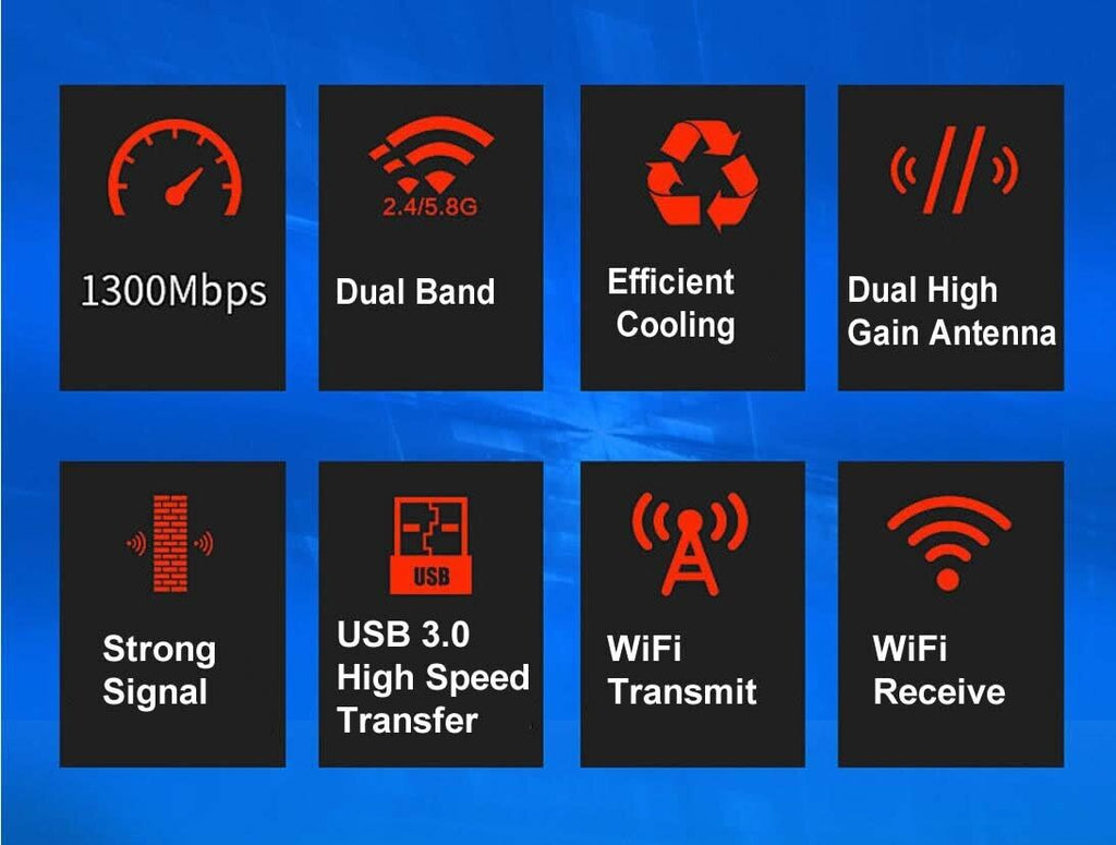AC1300 USB 3.0 WiFi Wireless Adapter Dongle 802.11ac 5GHz Dual Band 11AC