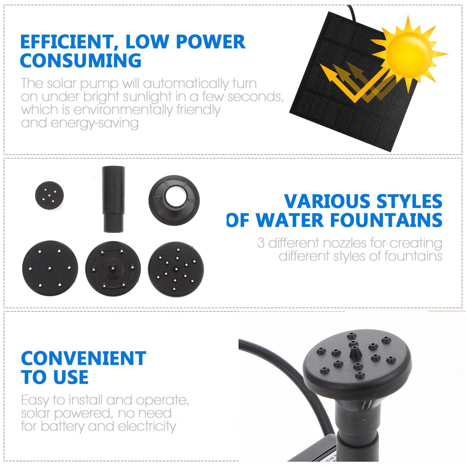 - Operation is simple! Just place the solar panel in the sun before putting the pump in your fountain and enjoy the soothing sound of water