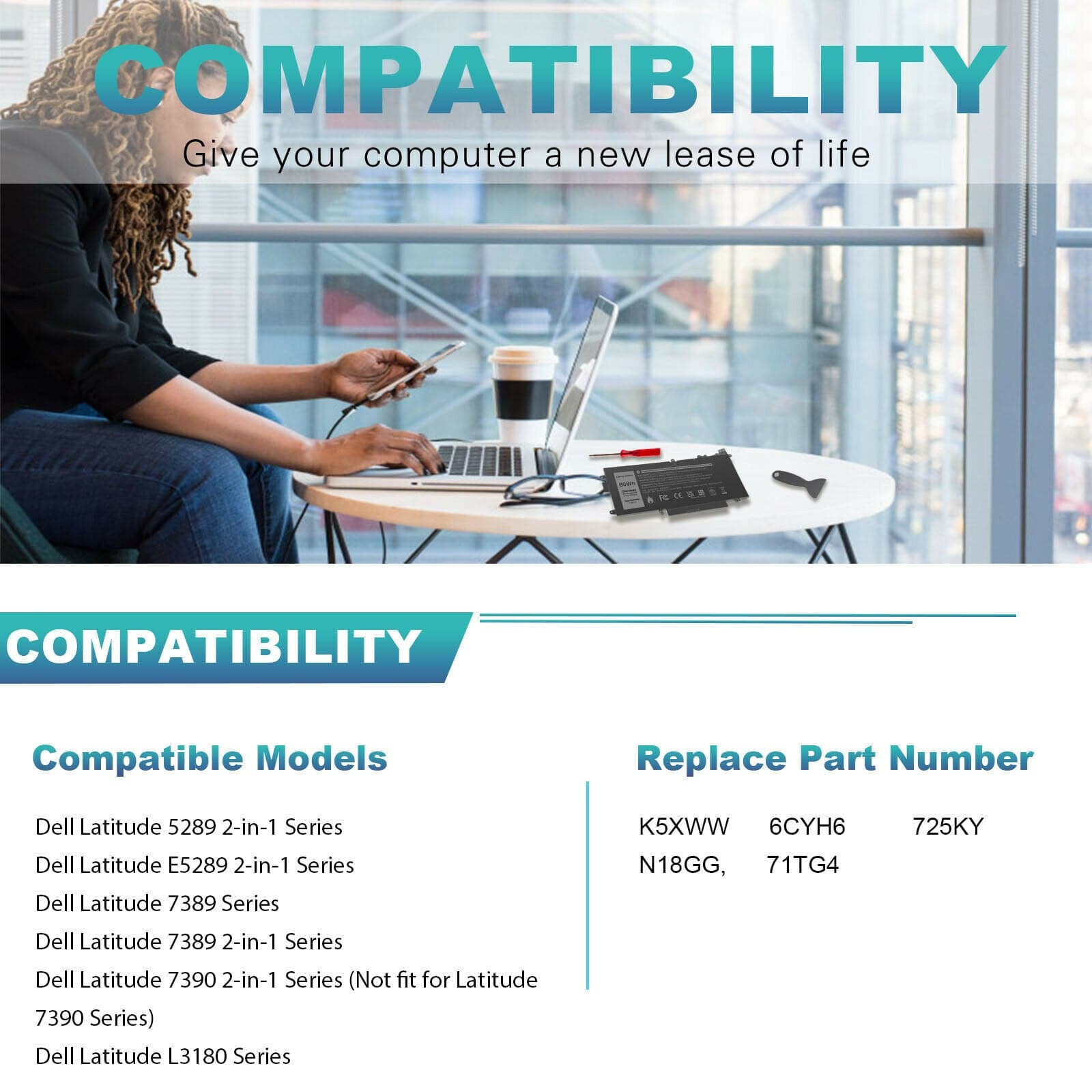 K5XWW Battery for Dell Latitude 7389 7390 12 5289 2-in-1 L3180 451-BBZC 71TG4