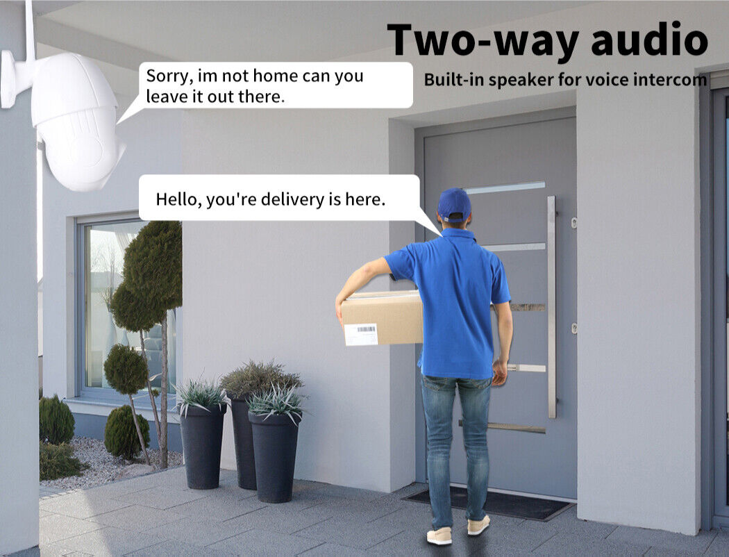 Take hold of the camera using your mobile phone, simply install the app and it's ready to go. This wireless camera is equipped with intelligent controls including 360° rotation and 90° tilt. Change the angle with just simple clicks on your mobile phone. Designed to perform seamlessly non-stop with its built-in Wi-Fi system, easily connects to the local Wi-Fi signal and transmits the video straight to your mobile phone. Unlike other products of the market, we do not restrict you - It is equipped with a two-way voice intercom for those moments when you want to communicate with the delivery man or letting someone know that you are not home.