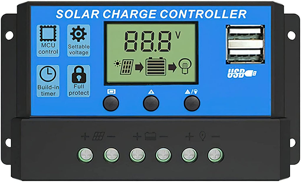 Solar Panel Charge Controller & Regulator 12V/24V auto dual USB 30A Battery PWM