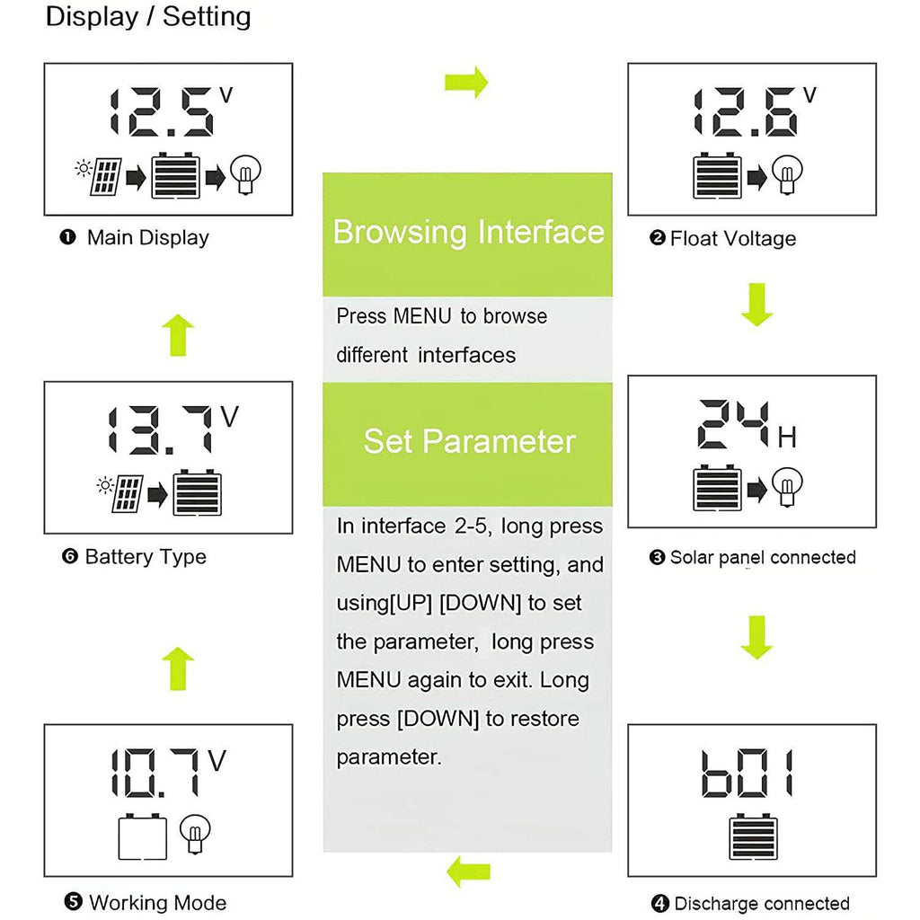 - Make sure your battery has enough voltage for the controller to recognize the battery type before first installation.